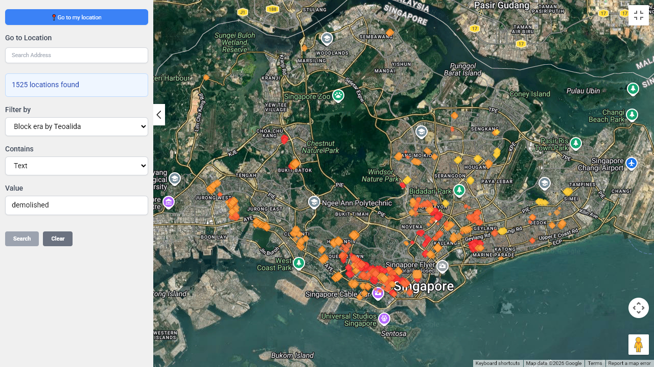 I organized HDB blocks by 8 eras: 1927-1960 SIT era, 1961-1981 HDB classic era, 1980-1991 HDB classic era, 1991-1998 centralized refuse chute, 1997-2006 household shelter, 2004-present, 2015-present, 2024-present