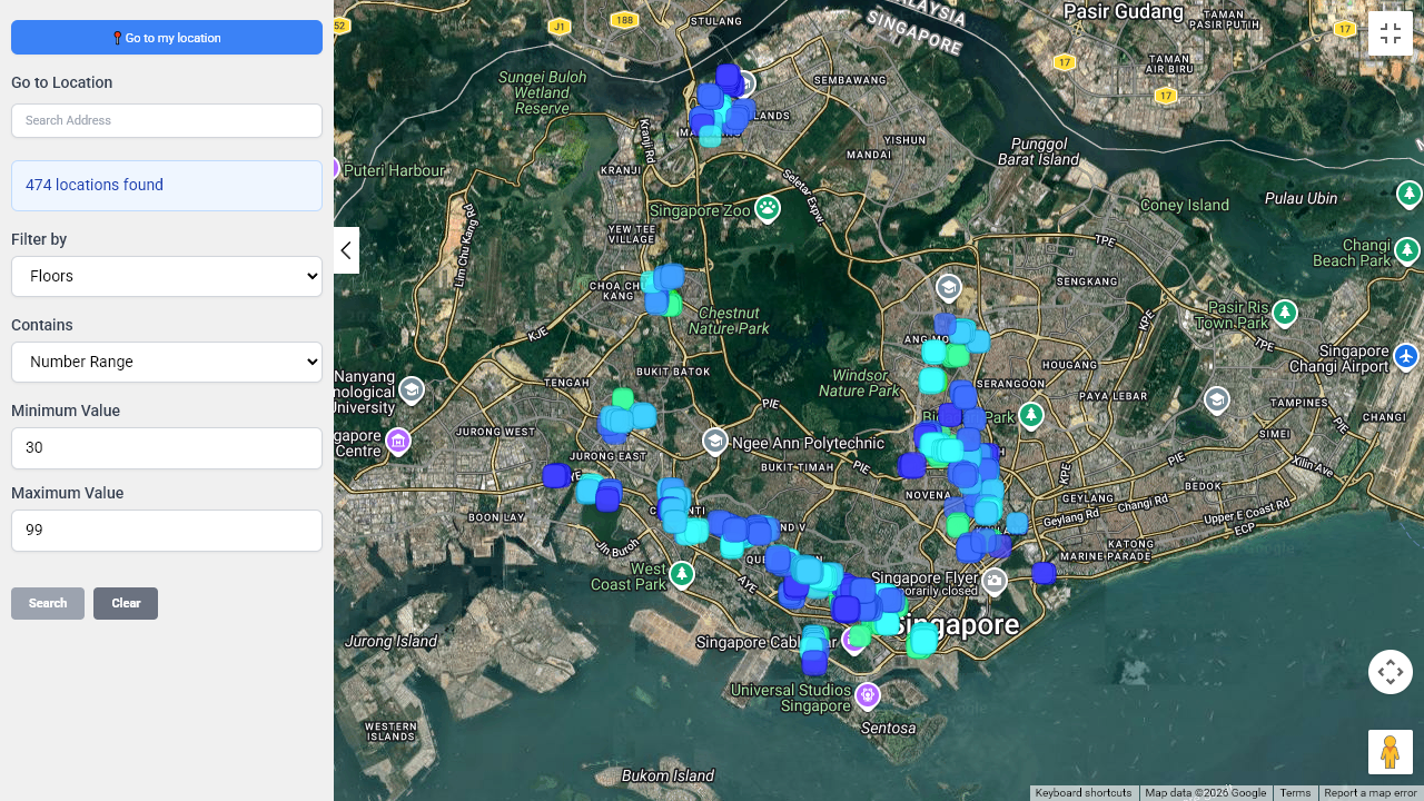Numerical range: type minimum and maximum to shows blocks with number of flats within specific range.
