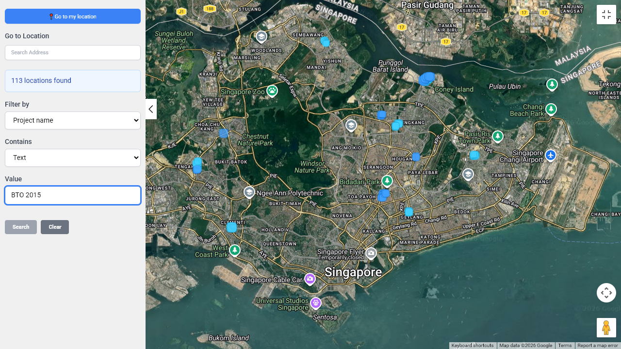 Contains: “BTO 2015” or “SERS 2003” to see projects sold via specific scheme in a specific year, or type a specific project name to see only blocks belonging to it.